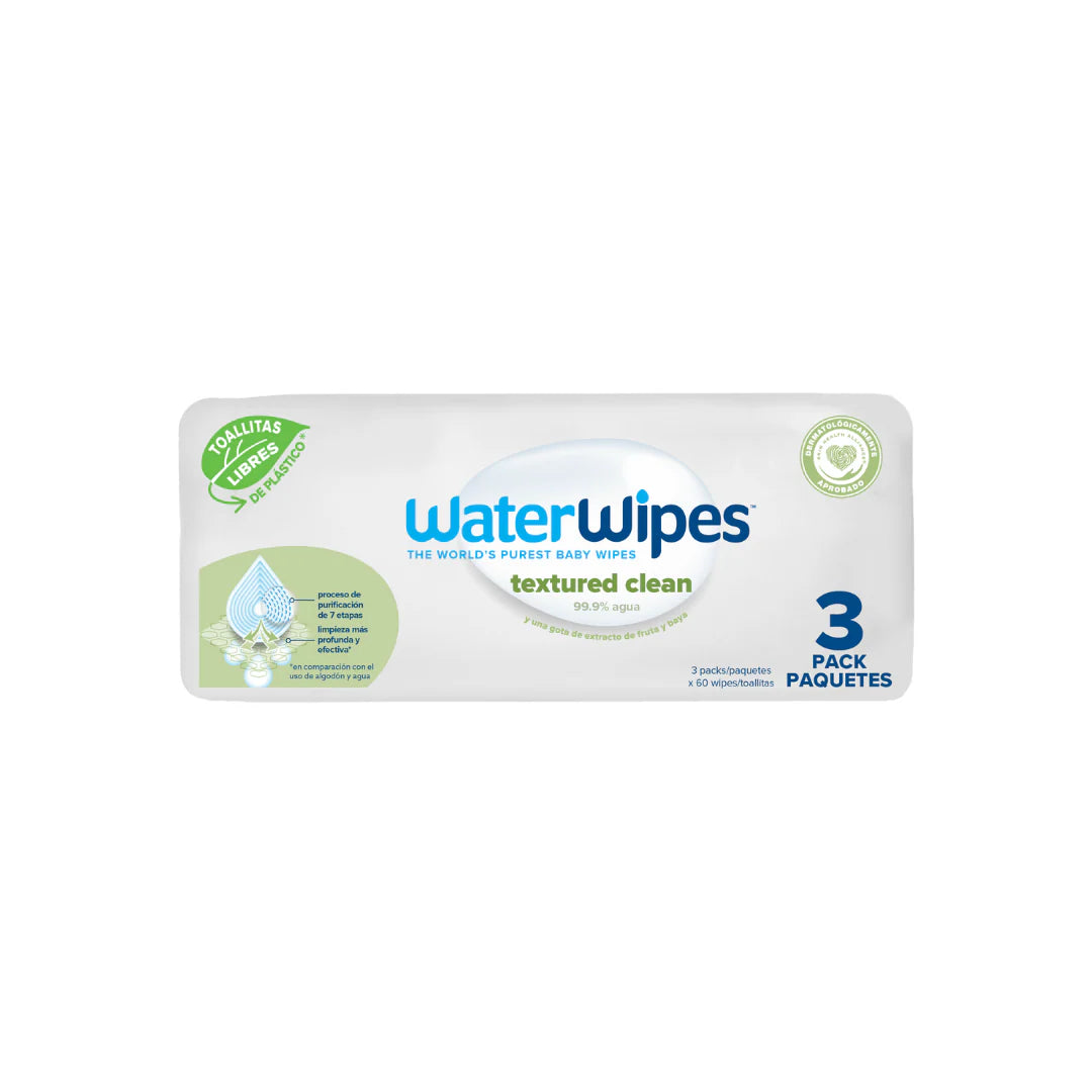 Descubre la nueva versión de las toallitas más puras del mundo: WaterWipes Textured Clean. Especialmente diseñadas para ofrecer una limpieza más profunda sin dejar de ser seguras y suaves para la piel sensible de tu hijo. Ideales para cambiar pañales o limpiar manos y carita con total confianza.