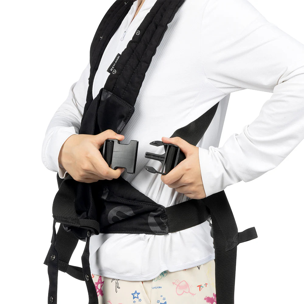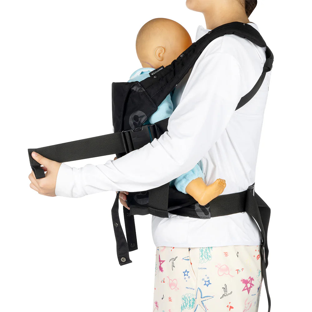 Descubre el Porta bebé Francesco: para una distribución óptima del peso y estabilidad adicional, este canguro también incluye una correa de pecho y correas elásticas, lo que lo hace cómodo y adaptable para ti o cualquier persona que lo use.
