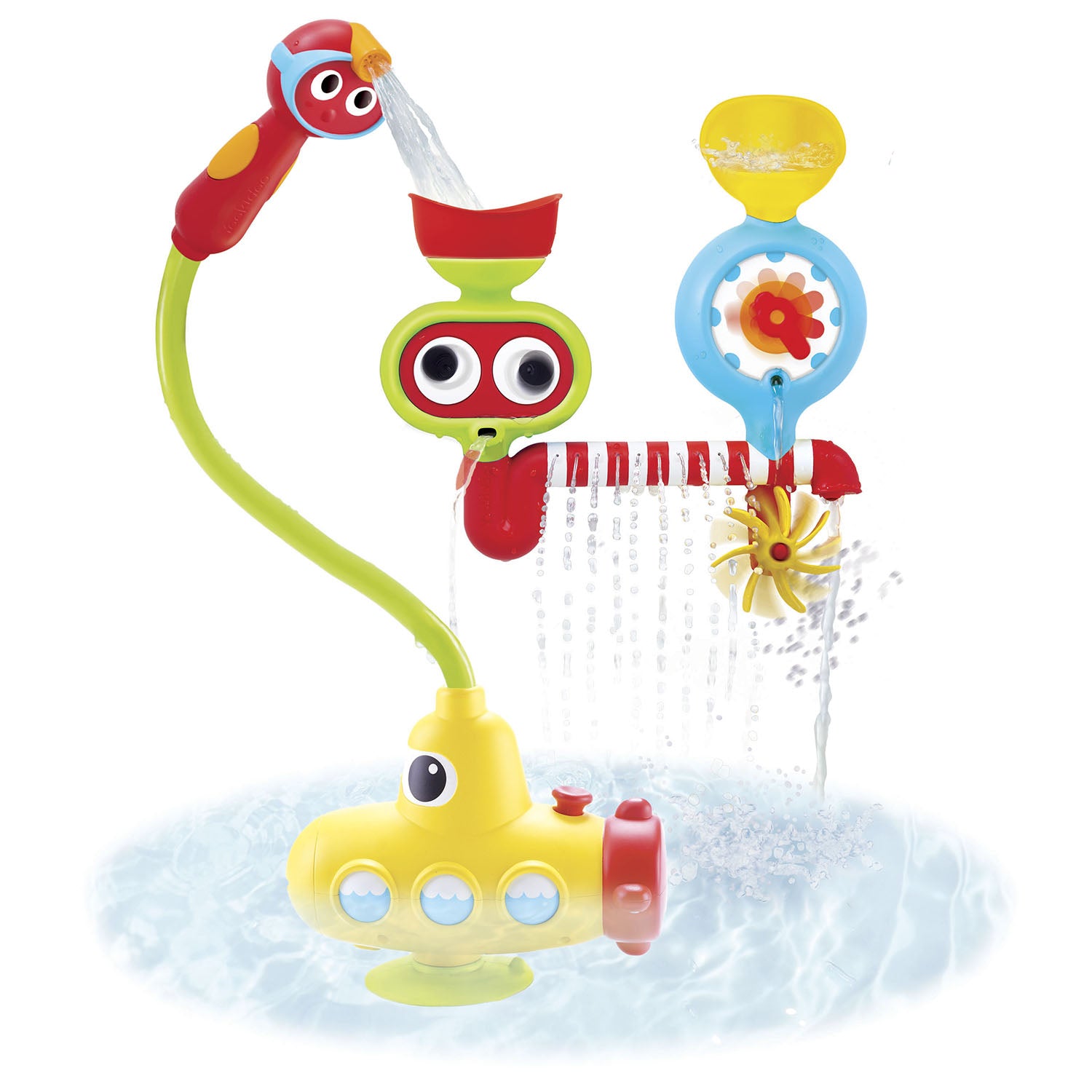 El juego con agua se vuelve extremo cuando tienes un submarino Y cuando ese galardonado submarino rocía agua en la divertida estación de actividades,desencadena una cadena de reacciones mágicas en cadena, creando placer y exploración sin fin durante la hora del baño.Coloque el submarino que funciona con baterías en el fondo de la tina y fije la estación de actividad acuática al costado de la tina con las ventosas, Asegúrate de que el nivel del agua cubra las ventanas del submarino y de que la hélice amarilla de la estación de actividades esté sobre el agua. Ahora prepárate para la acción,Dirija el flujo de agua hacia la estación de actividad, lo que provoca una reacción en cadena que incluye canalización, giro y rociado , convirtiendo la bañera en un paraíso marino, Vierta en un embudo y ponga los ojos saltones en movimiento. Vierta en el otro embudo y haga girar el dial, Siga la corriente de agua a medida que fluye de un lado de la tubería al otro o hace girar la hélice .USO DE 2 A 6 AÑOS,1. Utilice únicamente 4 pilas AA.( no incluidas)
